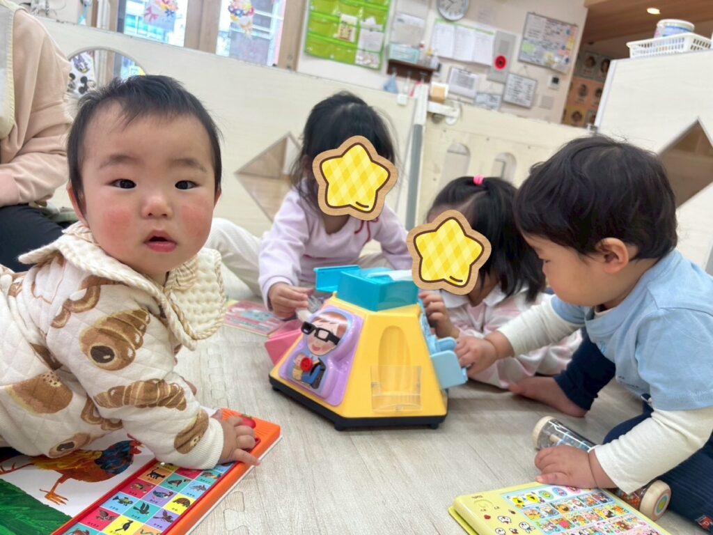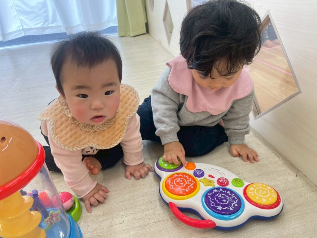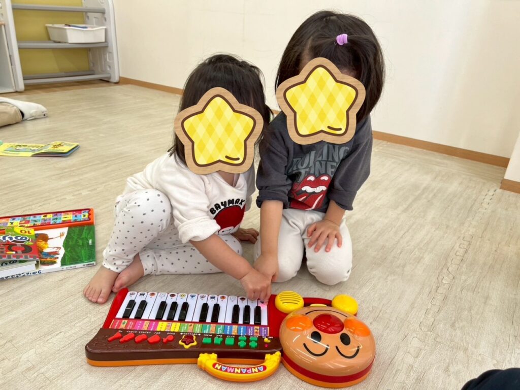 音の出るおもちゃについても、様々な用途で音の出し方を覚えつつ、興味津々で触っていました